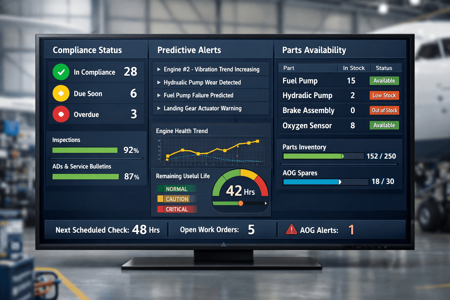 Real-time parts integration closes the loop between maintenance planning and supply chain execution. When tracking programs connect directly with inventory systems and supplier networks, parts availability becomes a planning input rather than a discovery during execution. This is especially impactful for reducing AOG resolution times.