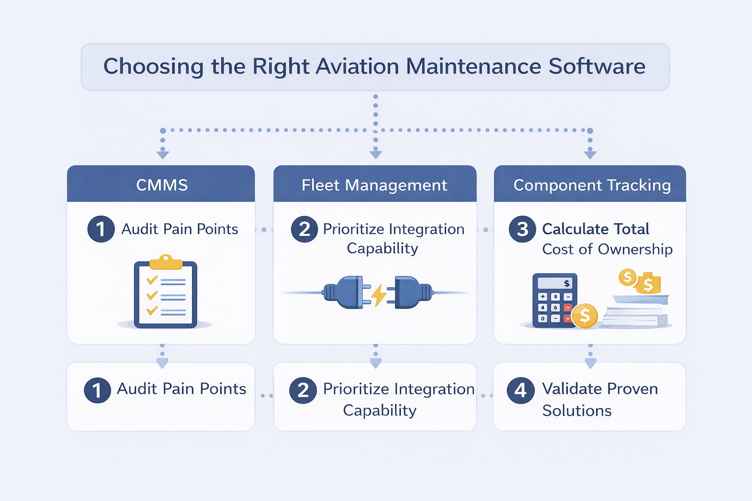 Second, prioritize integration capability over feature lists. The best aviation maintenance software in 2026 isn't the one with the most features—it's the one that connects seamlessly with your existing aircraft monitoring systems, ERP, and supplier networks. API-first architecture isn't optional anymore.
