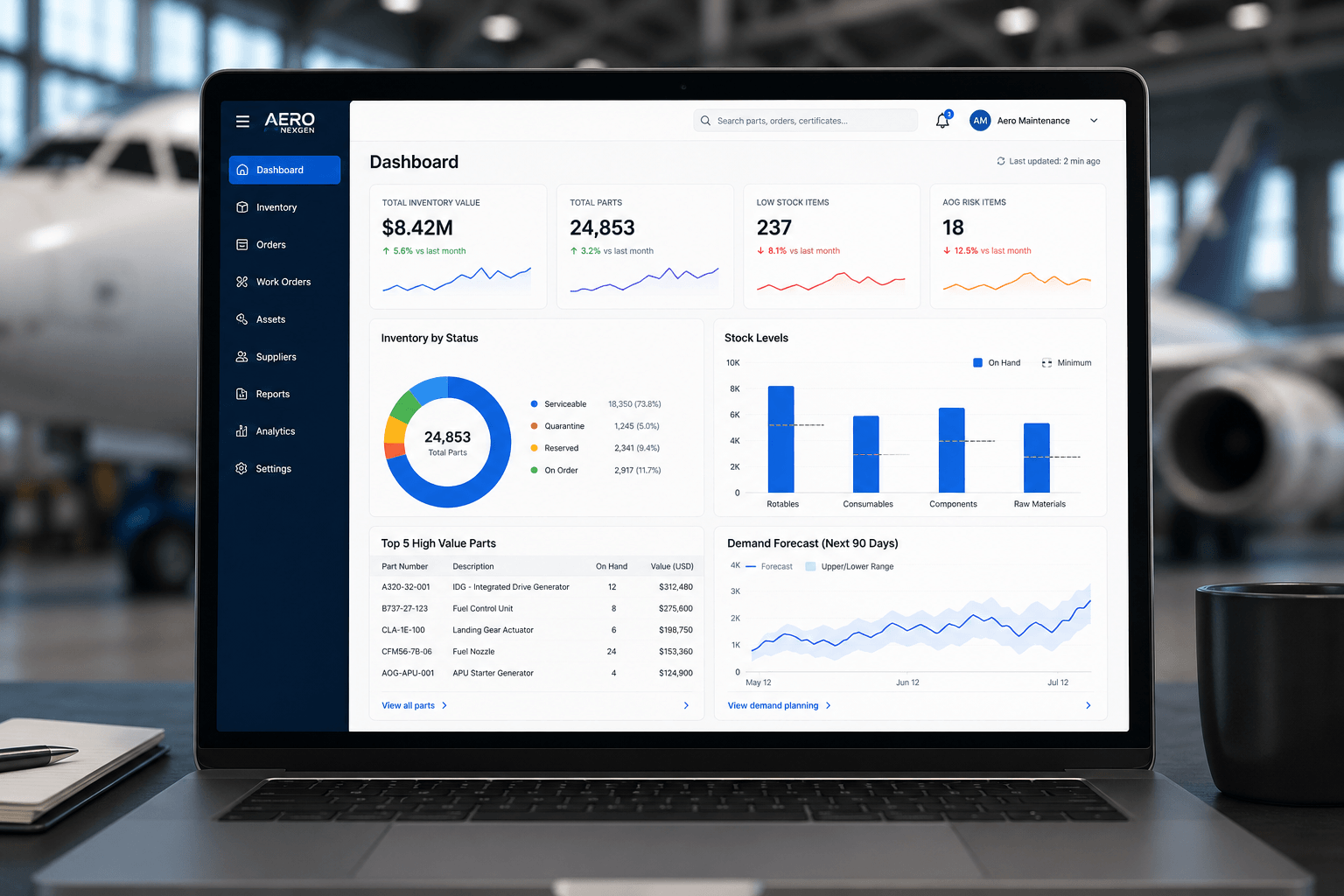 Regulatory compliance capabilities are non-negotiable. Your MRO inventory software must maintain complete audit trails, support Part 145 requirements, handle rotable component tracking, and generate compliance reports automatically. Systems that treat aviation like generic warehousing will create certification nightmares.